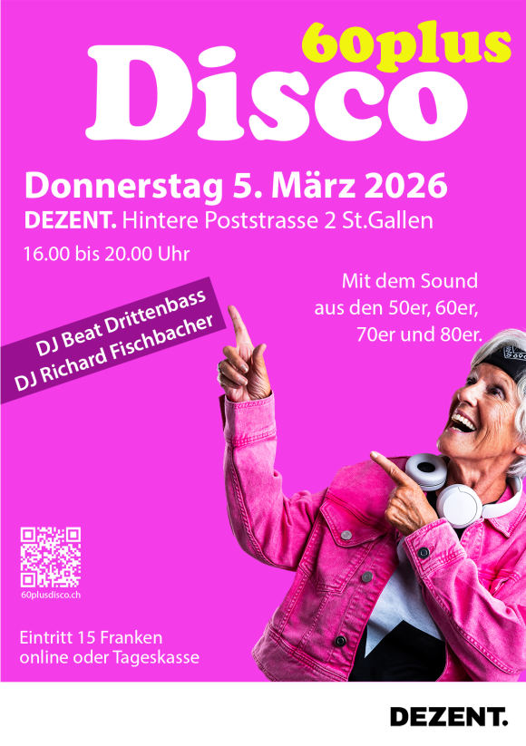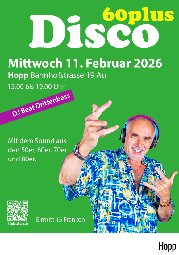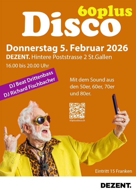 60plusDiscos bringen Menschen über 60 zusammen. Mit Musik der 50er, 60er, 70er und 80er – Rock’n’Roll, Beat, Disco, Soul, Tanz- und Schlagerhits. Tanzbare Songs, die während 4 Jahrzehnten den Takt angegeben haben.